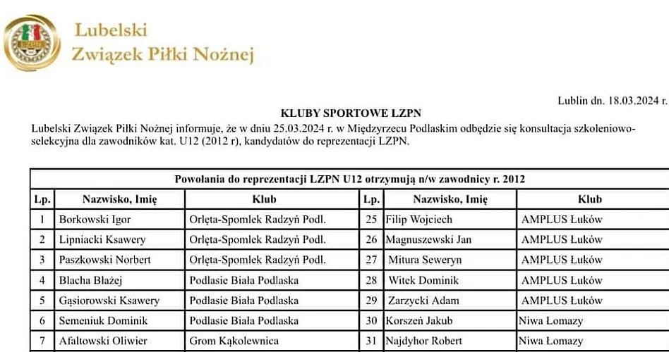 Wśród powołanych przez Michała Tusza oraz trenerów współpracujących Kacpra Siwca, Ryszarda Grochowskiego, Kamila Korniluka i Roberta Nowackiego znaleźli się nasi przedstawiciele.