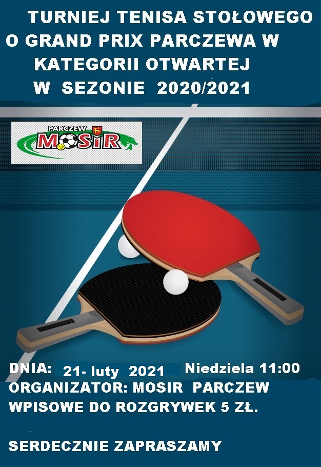 - Do dyspozycji będziemy mieli cztery stoły. Będzie to drugi turniej, a cały cykl składa się z czterech odsłon. Do ogólnej klasyfikacji Grand Prix będą zaliczane trzy najlepsze wyniki. Zapraszamy fanów piłeczki celuloidowej do walki przy stołach w Parczewie w sali Miejskiego Ośrodka Sportu i Rekreacji przy Al. Jana Pawła II - mówi Zbigniew Smoliński, jeden z organizatorów turniejów tenisa stołowego.