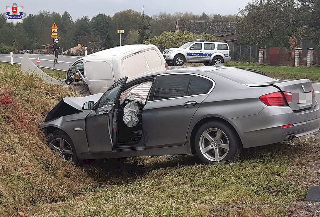 Do tego groźnego zdarzenia doszło w czwartek po południu w Mostach w gminie Podedwórze. Jak wstępnie ustalili mundurowi, kierujący pojazdem marki Citroen Berlingo wjeżdżając na skrzyżowanie z drogą wojewódzką W812 zlekceważył znak ustąp pierwszeństwo. Wyjechał tym samym wprost pod koła kierującemu pojazdem marki BMW, którym w kierunku Włodawy podróżował 52-latek. Doszło do zderzenia pojazdów, których siła uderzenia wyrzuciła auta do przydrożnego rowu.
