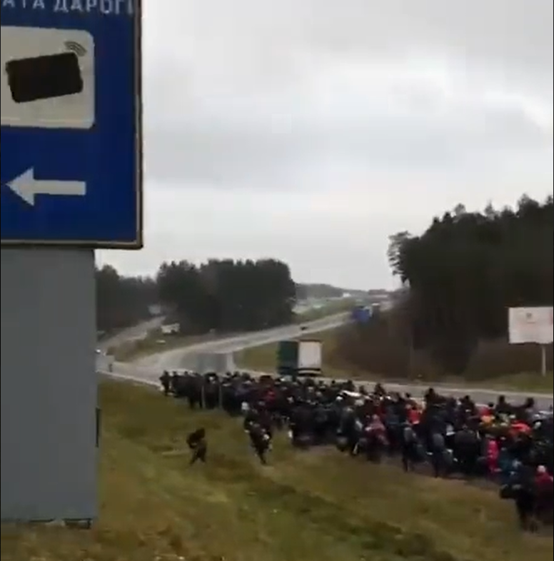 W poniedziałek (8 listopada) rano w internecie pojawiło się nagranie. Widać na nim grupę imigrantów idących w stronę polskiej granicy, żeby przekroczyć przejście graniczne w Kuźnicy Białostockiej. Z kolei na innych nagraniach są w pobliżu przejście graniczego w Bruzgach po stronie białoruskiej, a obok nich widać uzbrojonych ludzi z psami.