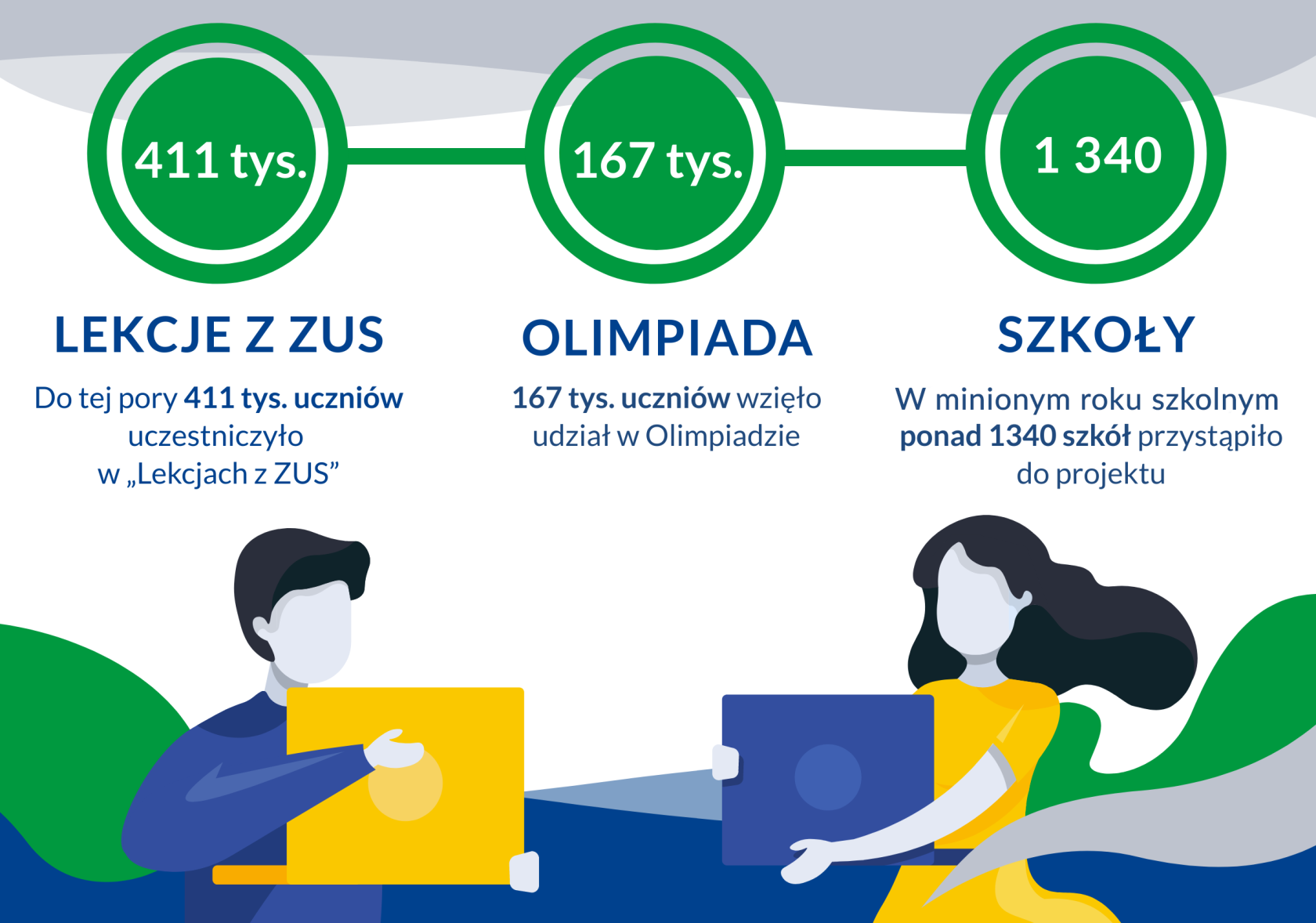 "Lekcje z ZUS” to projekt edukacyjny skierowany do szkół ponadpodstawowych. W ramach niego odbywają się lekcje o zasiłkach, emeryturach, rentach, ubezpieczeniach i prowadzeniu firmy.